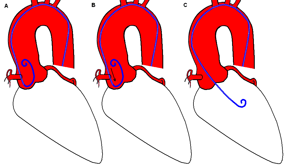 Мал. 4 Схема введення катетера в лівий шлуночок серця:
